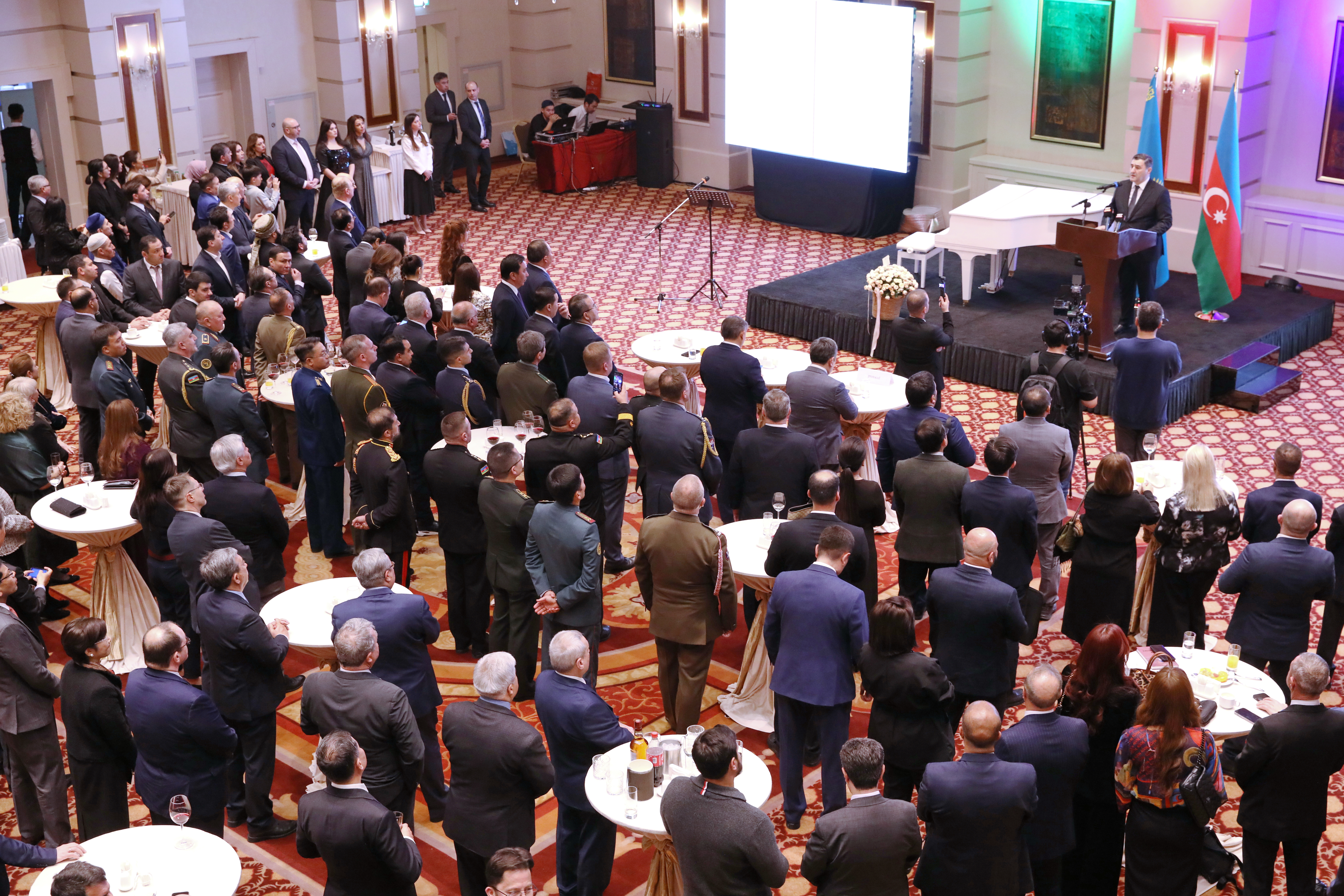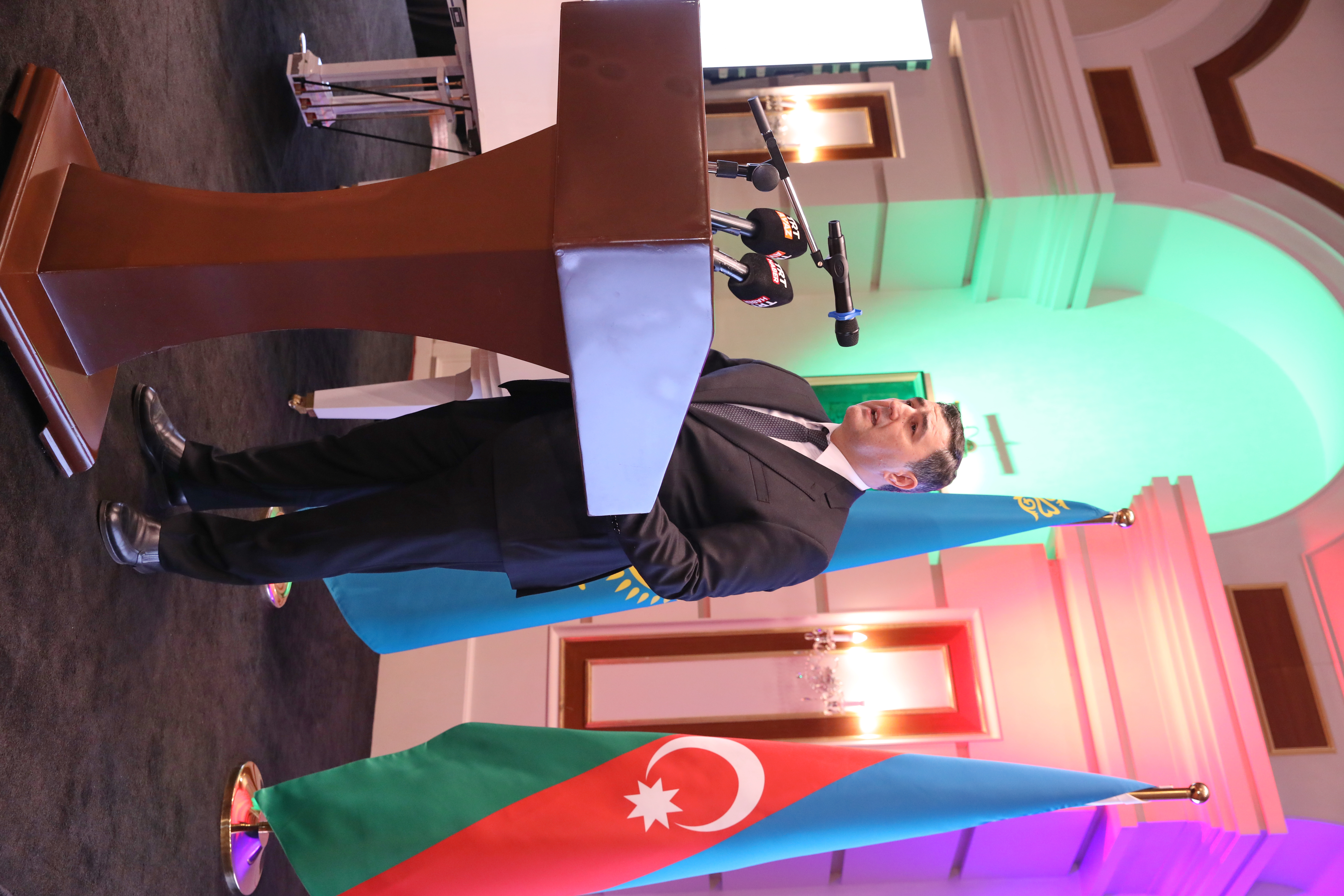 Qəbul Qazaxıstan Respublikası və Azərbaycan Respublikasının dövlət himnlərinin səsləndirilməsi ilə başlamışdır. Tədbiri giriş sözü ilə açan səfir A.Atamoğlanov çıxışının əvvəlində Türkiyəyə məxsus hərbi nəqliyyat təyyarəsinin qəzaya uğraması ilə əlaqədar qardaş Türkiyə xalqına və Silahlı Qüvvələrinə başsağlığı vermişdir. Bu faciəvi hadisə səbəbindən rəsmi qəbulda nəzərdə tutulmuş mədəni-musiqili proqramın ləğv olunduğunu elan etmişdir.
